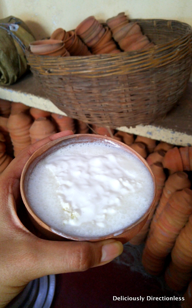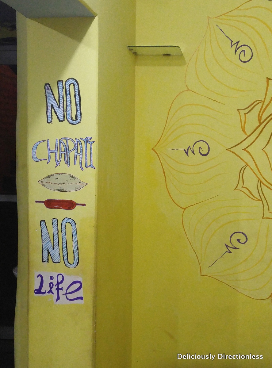 We stopped by at Bana Lassi, a colourful shop with a library of sorts at the entrance, hippie-style graffiti on its walls, and pithy slogans painted everywhere. We enquired about their specialty and the owner said that the pomegranate and coconut lassi was a hot favourite with his customers – it sounded suitably weird so obviously, the husband opted for it! I settled for the regular malai lassi. The lassis arrived in big earthen cups and were satisfyingly thick and delicious. We even polished off the pomegranate-coconut concoction.