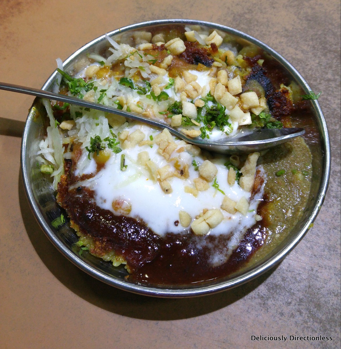 We wanted to try the palak chaat, another local specialty of batter-fried spinach leaves served in chaat form, but it was not available. So we settled for a tikki chaat (fried potato cutlet topped with chutneys and yoghurt), and followed it up with a delicious kulfi falooda.