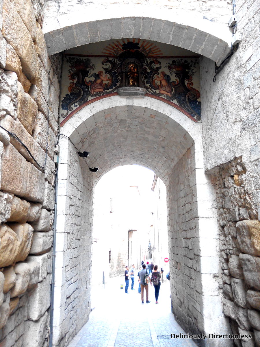 I descended the steps of the cathedral (stopping for a coffee in the square) and walked through the Portal de Sobreportes, a tall gate first built by the Romans in the 3rd century. You can still see the original Roman-era stones at the base of the gate.