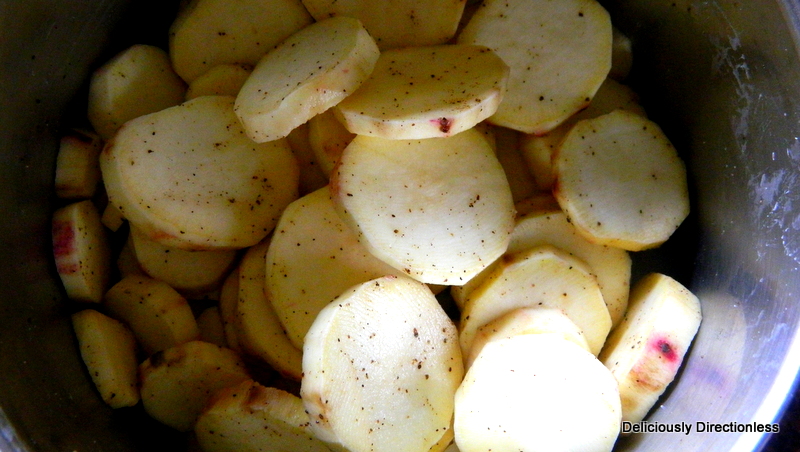 - Cut them into slices (or wedges or lengthwise, French fries style – as you