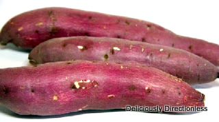 - Thoroughly clean the sweet potatoes & scrape the skin off.