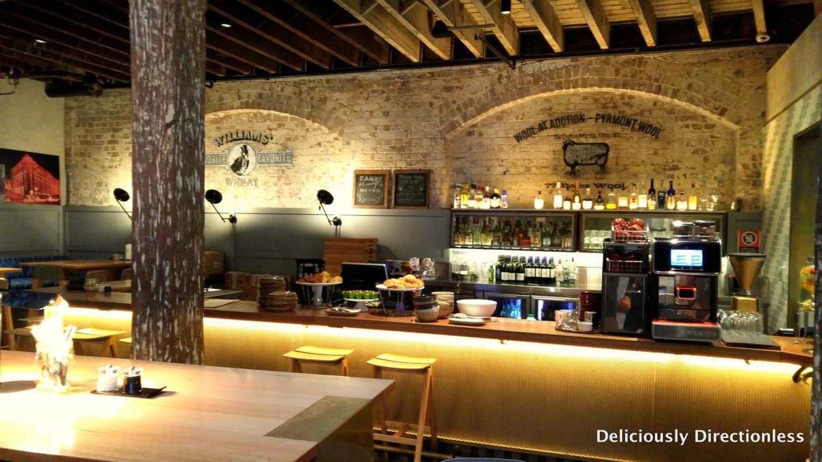 The name of the hotel references its two very important aspects – with a prime position near Sydney’s Darling Harbour, the hotel is in a building dating from 1888, a building which was formerly a wool store. The hotel retains the rustic charm and many elements of the building are preserved – the original sawtooth roof (the only one in the city), the wooden beams in the welcoming Lo Lounge / reception area etc.