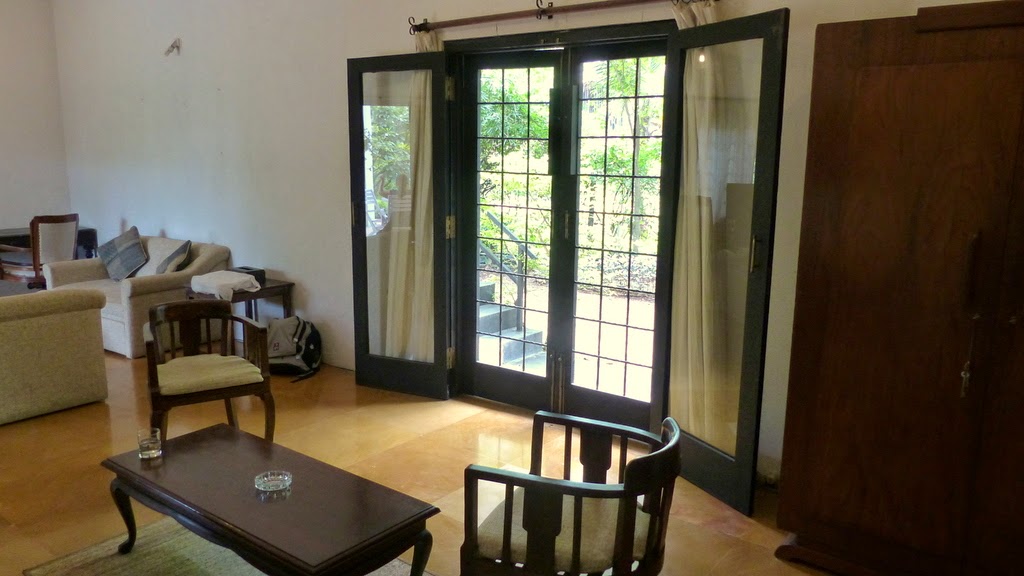 We did a recce of the place and really loved the way the entire house opened out – step out of the living room on to the patio; both the bedrooms too opened out to verandahs. The master bedroom is done up in pleasing shades of green and looks out on more greenery. The bed can easily accommodate three people (and it did, but more about that later). The main bathroom is enormous, with an open shower area. Both the bedroom & bathroom are furnished really well; the owners seem to have an eye for beauty and good taste, judging by the way the villa is done up.